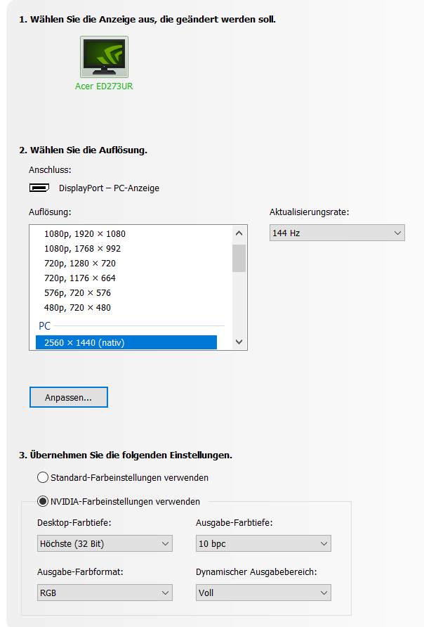 Daher kurze Frage an die Experten, gibt es einen genauen Weg die richtige Farbtiefwiedergabe herauszufinden oder ist das NVIDIA Tool hierbei verlässlich?