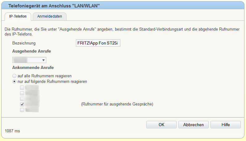 Will man auch Eingehende Anrufe annehmen und festlegen, welche Rufnummer für Ausgehende Anrufe angezeigt wird, muss man dies in den Telefonieeinstellungen der Fritz!Box vornehmen.