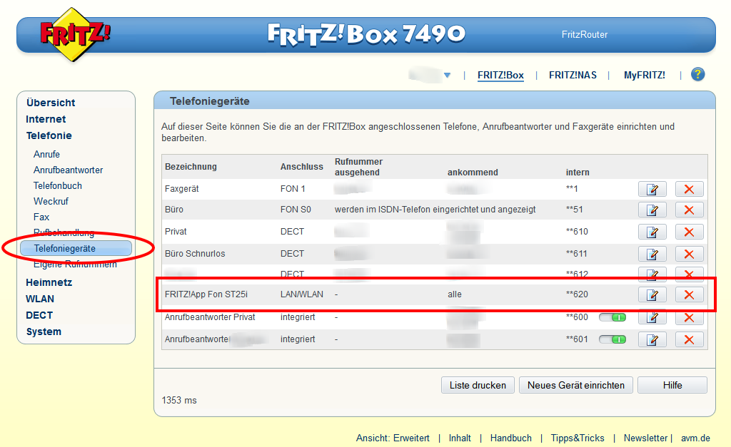 Telefoniegeräte (nicht eigene Rufnummern, wo man die VoIP Nummern eingetragen hat (mit der t-onlien Kennung usw.).