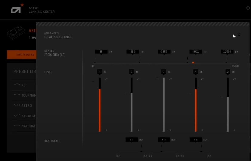 Das Problem: Ich habe kein Astro Headset, sondern ein HS70 Pro von Corsair. Für mich stellt sich nun die Frage, wie ich diese Einstellungen am besten nachahmen kann. Sowohl bei Dolby Access als auch in der Corsair Software (iCUE) ist der Equalizer starr mit Frequenzen von 32Hz bis 16kHz. Die Schritte im Astro-Eqializer sind größer und befinden sich teilweise zwischen den Werten bei Dolby (die abgebildeten Einstellungen sind kein Nachahmungsversuch, sondern einfach die aktuellen Settings):