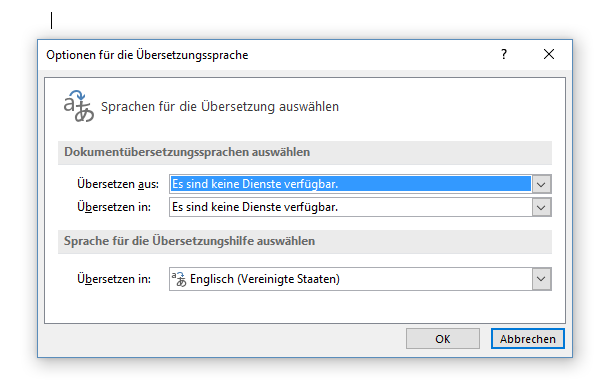 ÜBERSETZEN > Dokument übersetzen >"Es sind keine Dienste verfügbar"
