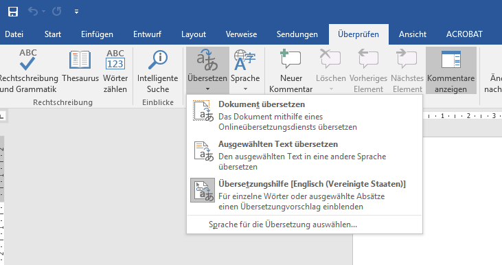 ich möchte ein ganzes Dokument übersetzen. Leider steht bei entsprechender Funktion immer