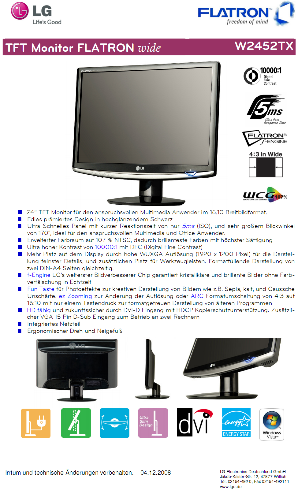 Wie oben schon gesagt werde ich wahrscheinlich den LG W2442PA oder Samsung 2443BW nehmen. Die W2452T und W2452V hatte ich auch schon im auge gehabt aber, die haben leider keine Pivot funktion.