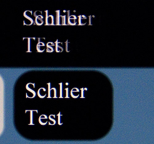 o grau-gelber Schleier bei starken Blickwinkelveränderungen (hat bestimmt _jeder_ Monitor)