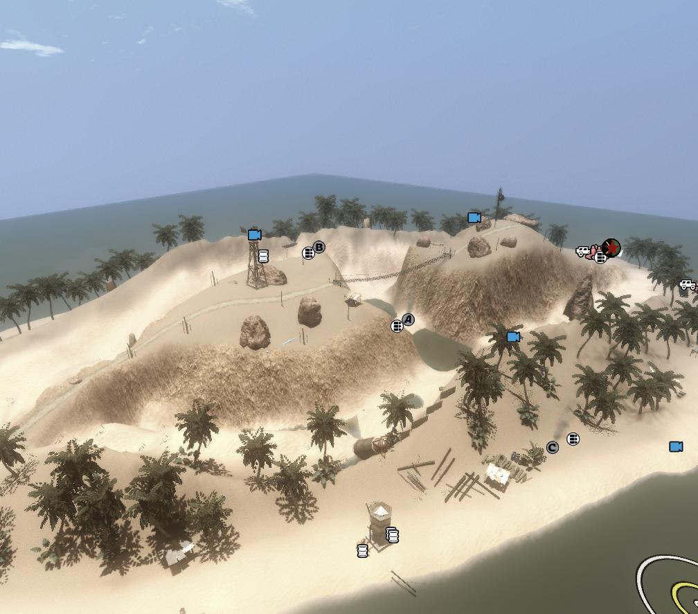 Auf der einen Seite der Insel ist ein altes Ureinwohner Dorf zu finden, was aber schon lange unbewohnt ist bis auf einen "Flugbrüchigen" (Lost lässt grüßen ). Die andere Seite der Insel besteht aus ein wenig Industrie und ist im allgemeinen dreckiger. Über die Mitte geht es durch eine felsige Wüstenlandschaft, sicherlich gut für Sniper und schwer drüber zu kommen.