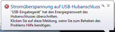 Wenn die Überspannung-Meldung auftaucht, funktioniert die Logitech Maus nicht, die per USB am Monitor angeschlossen ist, aber die 2. die hinten am PC am USB Port angeschlossen ist, funktioniert während dessen.