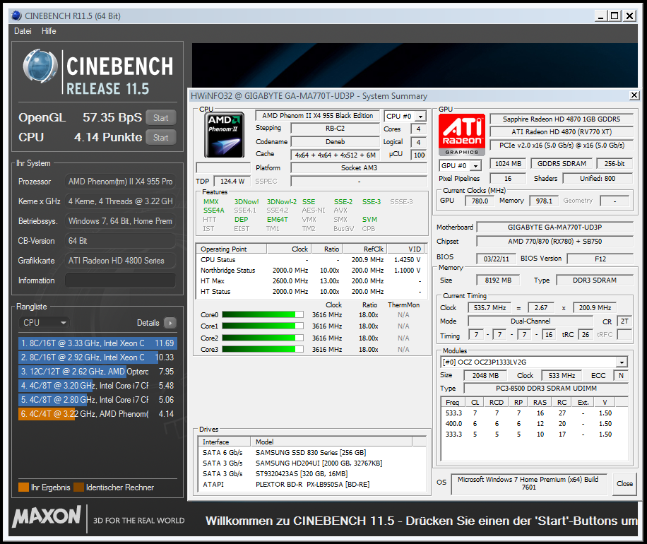 Die Übertaktung hat auch zu +20W an Strommehrverbrauch geführt.