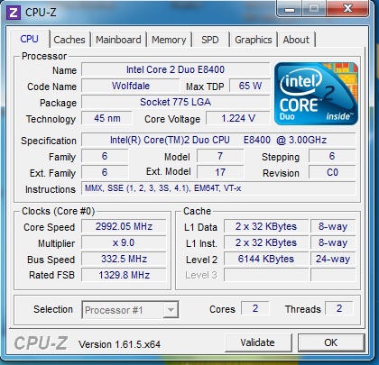 Prozessor : Intel Core 2 Duo E8400 (C0)