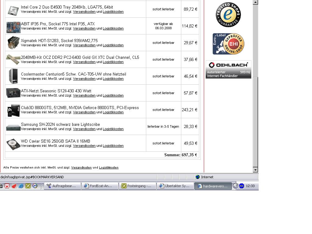 Da ich mit meinem "doofen" Job, der mich 14 std täglich beansprucht doch hoffentlich genug kapital bekomme um endlich einen dritten PC (neben Laptop und AMD in deutschland) zusammenzustellen... Gegen meine bisherigen Erfahrungen mit AMD und ATI möchte ich aber in diesem Fall auf eine Intel/nVidia-System setzen...