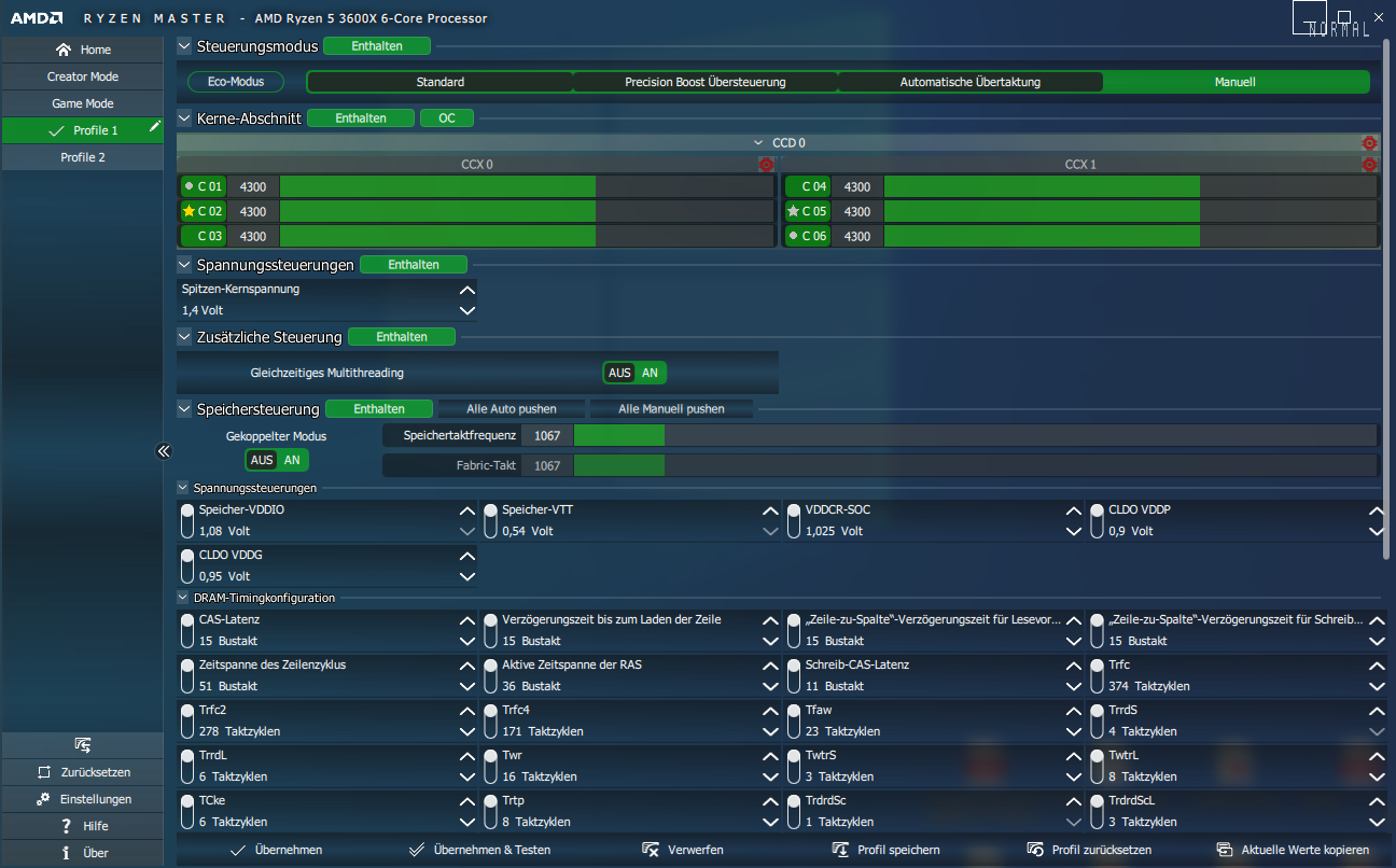 Und der Prozessor ist auf allen Kernen auf 4300 Mhz übertaktet, da er bei 4400 Mhz runtertaktet.
