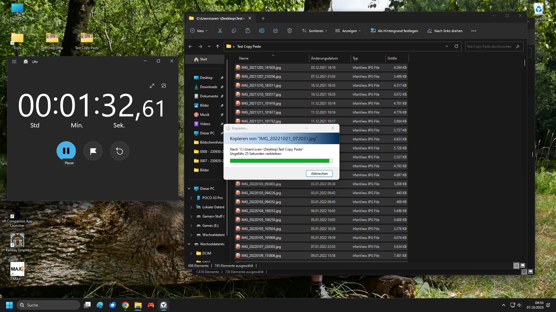Wenn ich 25 GB markiere und STRG+C drücke ist der aber nicht um 25GB mehr ausgelastet.