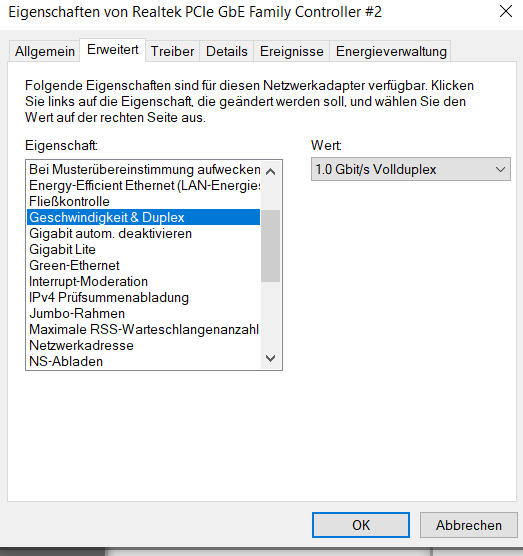 Ich hatte letztens diesen Starter Set von Devolo in der Artikelbeschreibung gekauft. Blöderweise kann ich nur damit maximal 100mbs Empfangen. Ich habe es bereits an einem anderen PCs getestet und dasselbe Ergebnis kam auch dabei heraus. Die LAN Kabeln sind 1GB übertragbar fähig! Das habe ich bereits direkt am Router getestet. In der Netzwerkeinstellungen habe ich bereits alles mögliche an Einstellungen ausprobiert, aber es hat nichts gebracht(siehe Bilder). Die dLans habe ich beide nebeneinander in der Nähe am Router auch schon getestet. Mir fallen jetzt langsam die Ideen aus. Jetzt frage ich euch. An was könnte es denn noch sonst liegen? Fehlerhaftes Produkt? Leider kenne ich mich nicht so gut aus mit dem Thema. Ich würde mich über eine Antwort freuen.