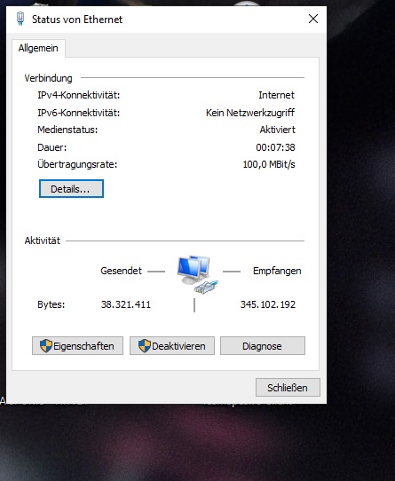 IPv6 ist in dem Fall in den Adapter Einstellungen deaktiviert.Wilhelm14 schrieb:Mich wundert zusätzlich, dass bei IPv6 "Kein Netzwerkzugriff" steht.