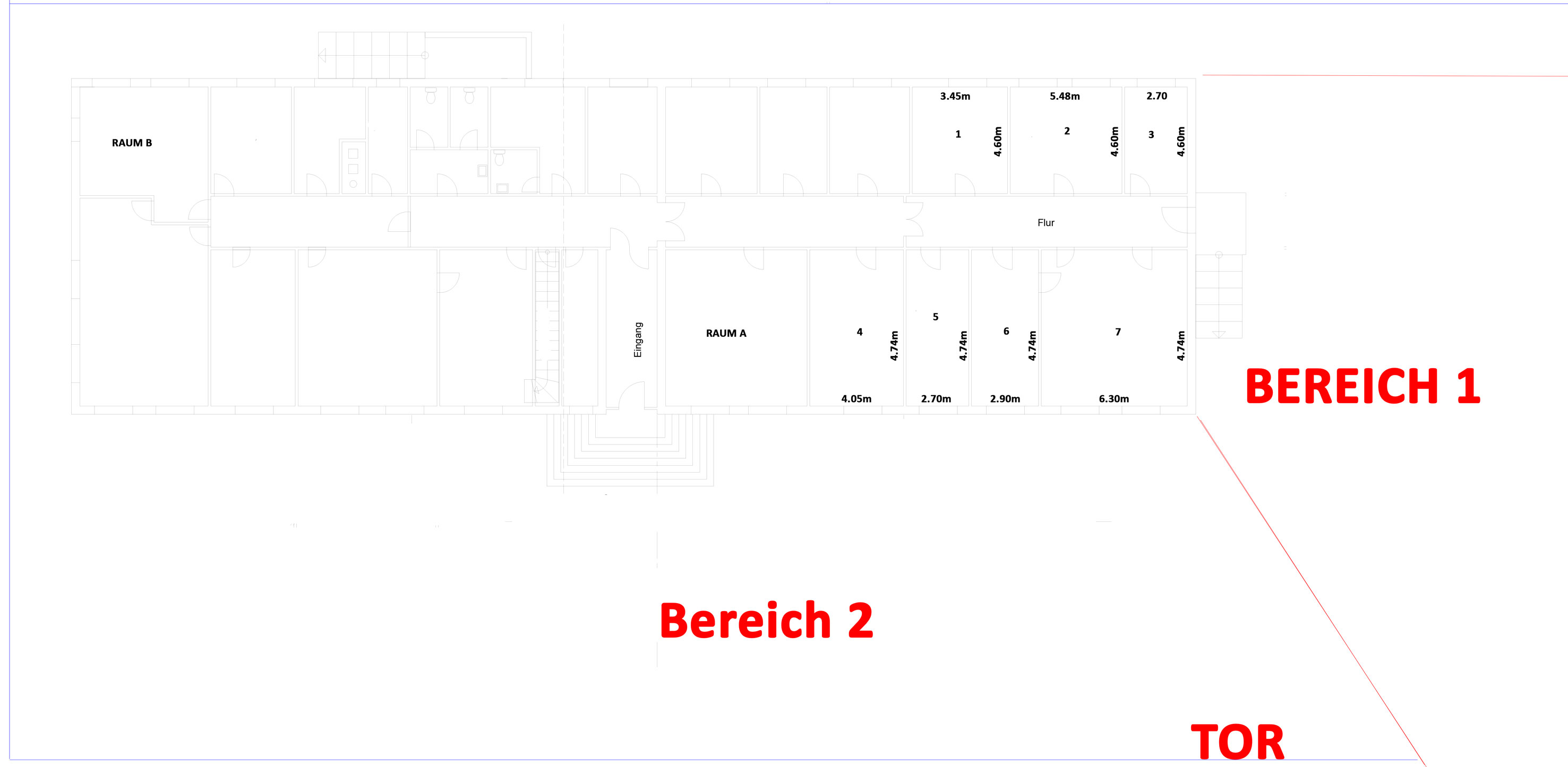 Im Innenbereich sind Zimmer 1-7 die Hundezimmer. Ihr müsst im Bild vllt etwas reinzoomen um den Grundriss deutlicher zu sehen. Diese sollen alle jeweils mit 1 Kamera ausgestattet werden.