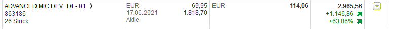 Ich hoffe auch, dass der Kurs nochmal zunimmt und AMD meine Verluste durch Delivery Hero von heute ausgleicht 😅D. ACE schrieb: