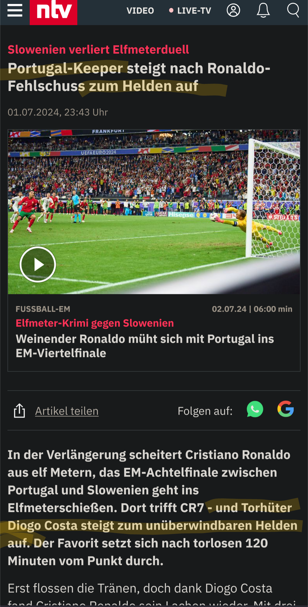 Den letzten 11er hat Ronaldo auch perfekt platziert geschossen. Unhaltbar.habla2k schrieb:Dass man sich über Ronaldo immer so lustig machen muss