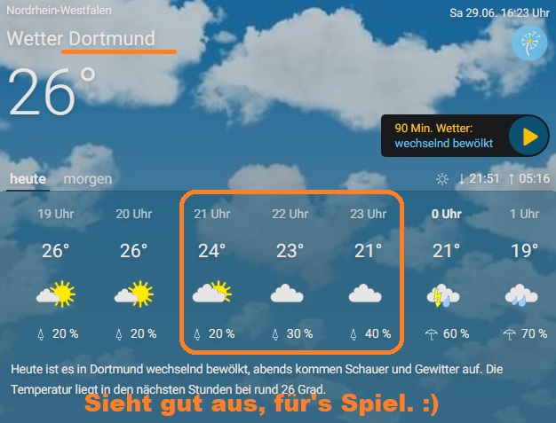 ChrisMK72 schrieb:Wetter sollte während des Spiels auch noch passen. 👍