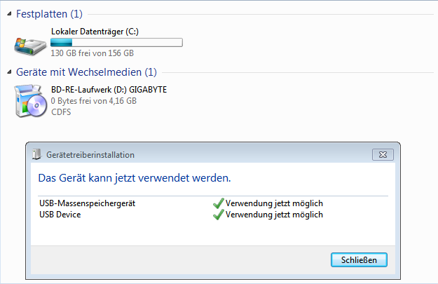 das Problem besteht aber immer noch. Wenn ich den USB Stick anschliesse wird er im Arbeitsplatz nicht angezeigt.