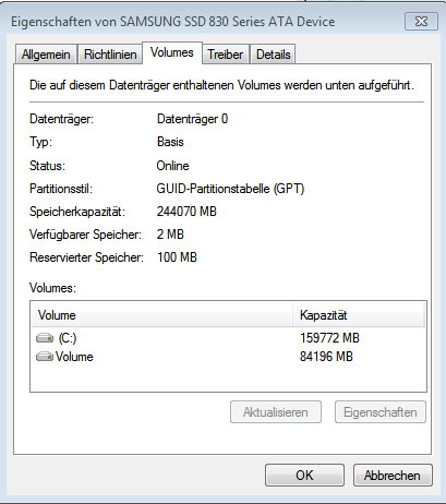 so sehen jetzt die eigenschaften von meiner ssd festplatte aus (siehe Bild)