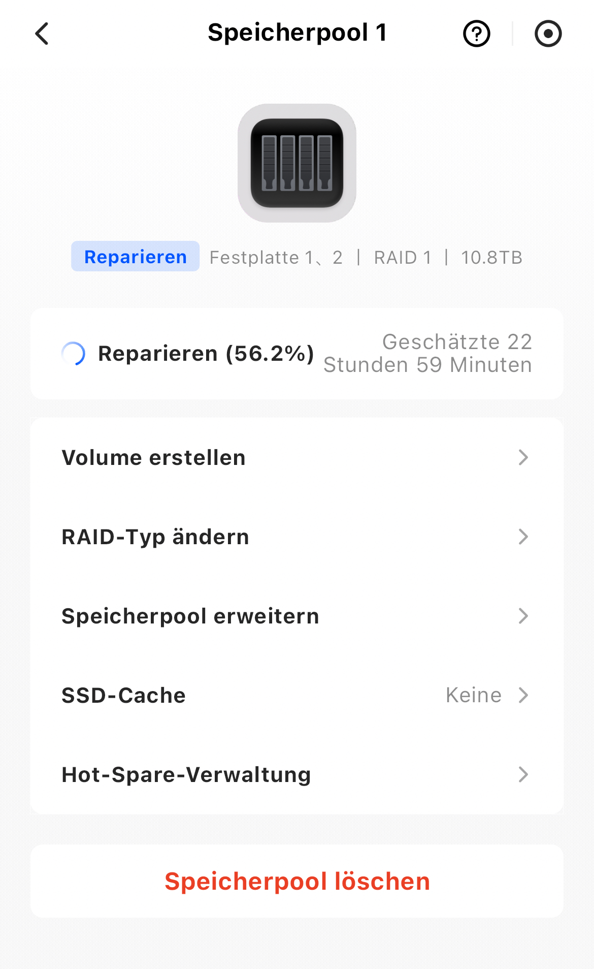 Was mir noch ausgefallen ist, das die ugreen Weboberfläche ständig abgestürzt ist das war gerade zu dem Zeirpunkt als wohl die Platte 2 aus dem Pool verschwunden ist.