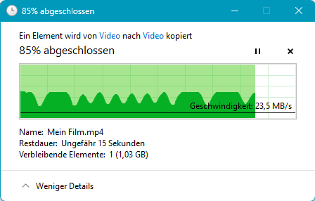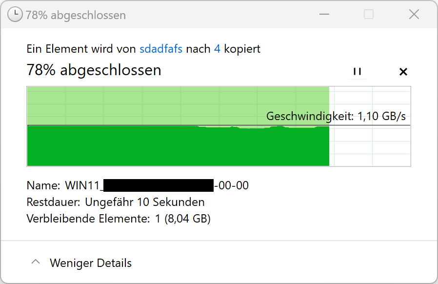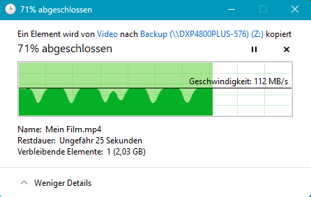 2x die gleiche Datei vom PC zum NAS kopiert (37,9GiB groß)