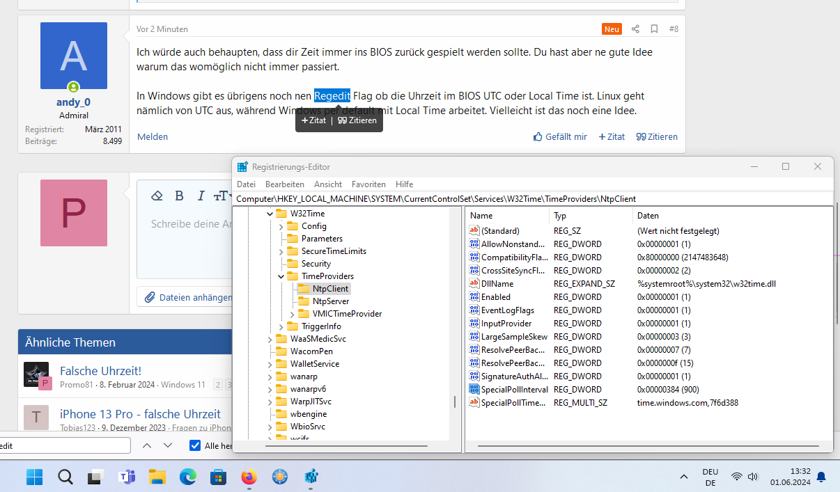 ich habe ein Problem mit meiner WIN11 Uhr. Diese stellt sich im laufenden Betrieb immer wieder 10 bis xx Minuten zurück.