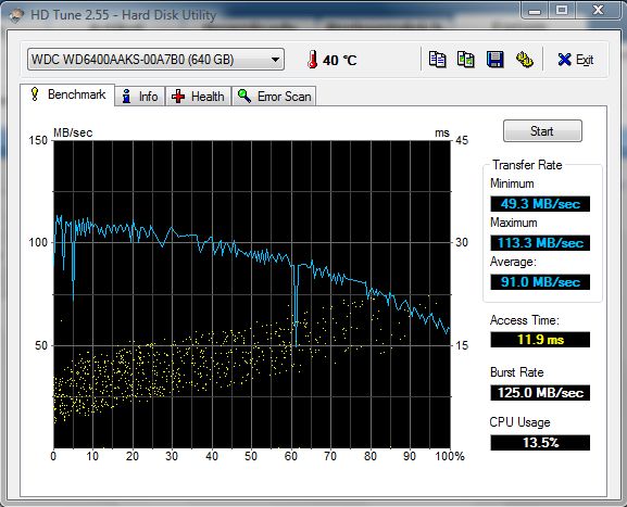 Lass mal den Benchmark von HD-Tune durchlaufen und mache anschließend einen Screenshot vom Ergebnis. Daran kann man sehen, ob die Festplatte ausgebremst wird.