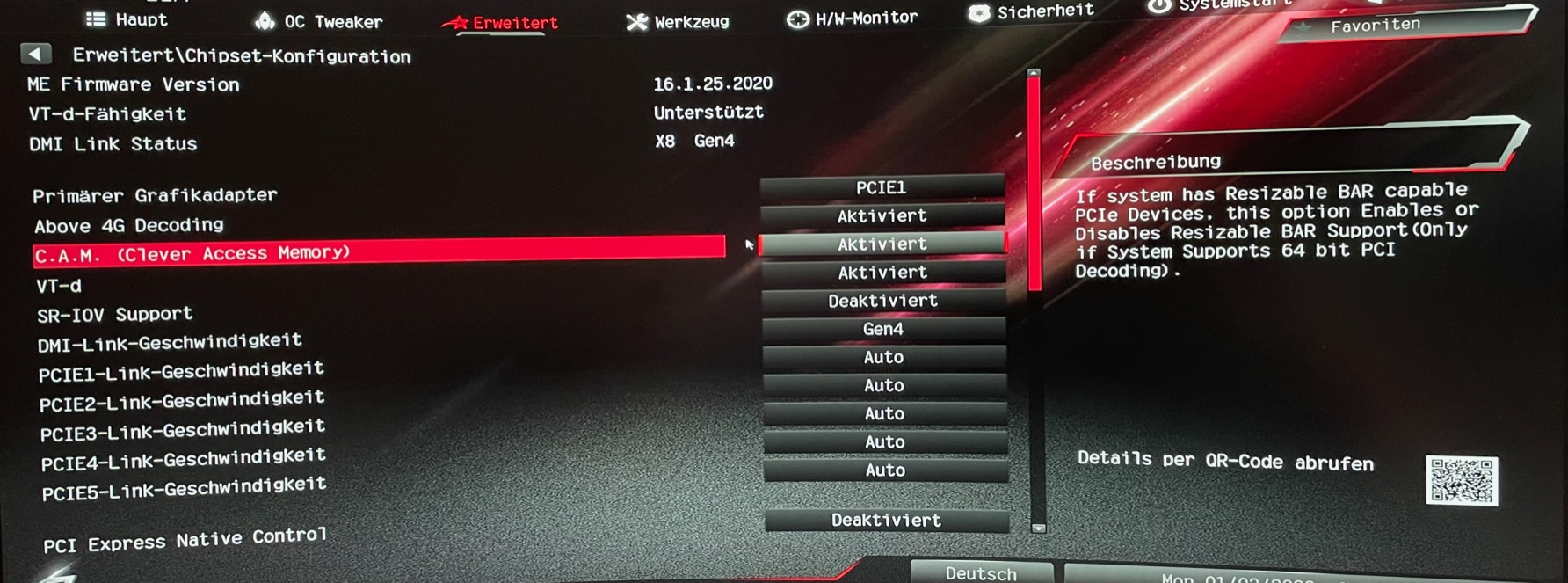 Den Menü Punkt CAM bzw. rBAR habe ich im BIOS ebenfalls, nur um das der Diskussion noch hinzuzufügen.