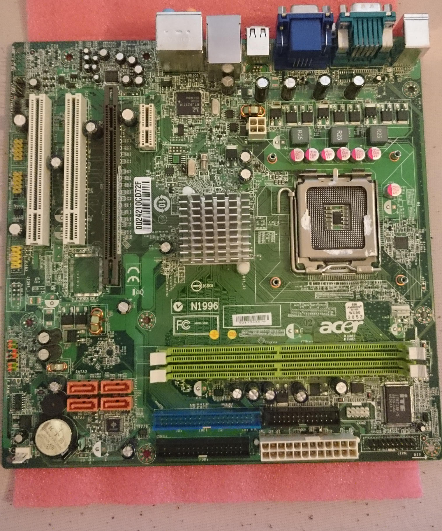 ich habe gerade einen Schrank ausgemistet und bin dabei auf ein altes Mainboard gestoßen. Leider weiß ich nicht genau, um welches es sich dabei handelt; google spuckt teilweise auch nur Unsinn aus. Im Anhang habe ich ein Bild vom Board hochgeladen und hoffe, dass es nicht zu unscharf skaliert wurde.