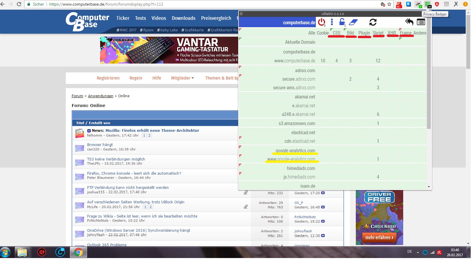 Ich habe mir für Google Chrome die Erweiterung "uMatrix" geladen.