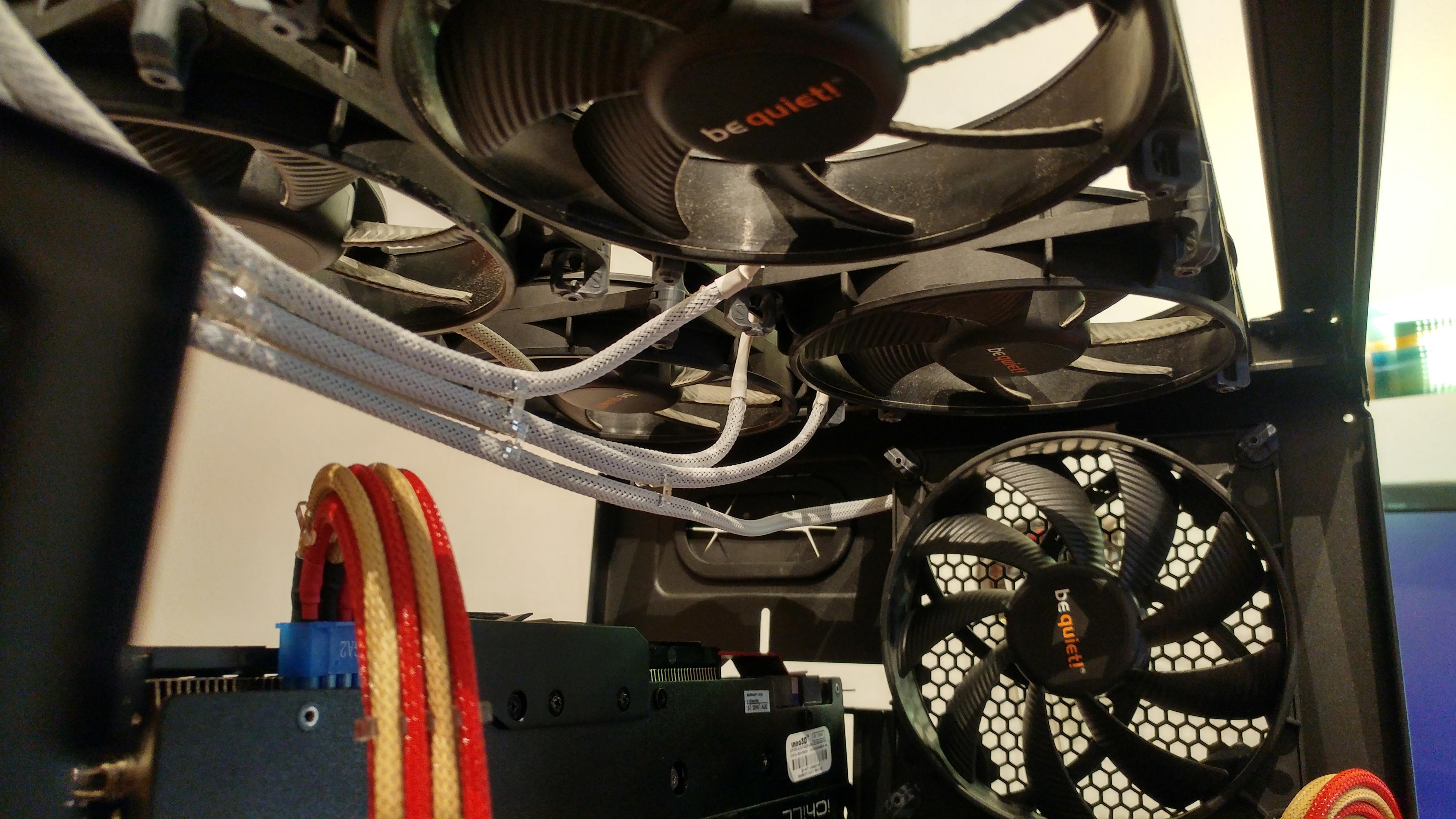 Als Lüfter für Gehäuse sind BeQuiet SilentWings 2 PWM 120mm (4x) und BeQuiet Silent Wings 2 PWM 140mm (1x) in verwendung.