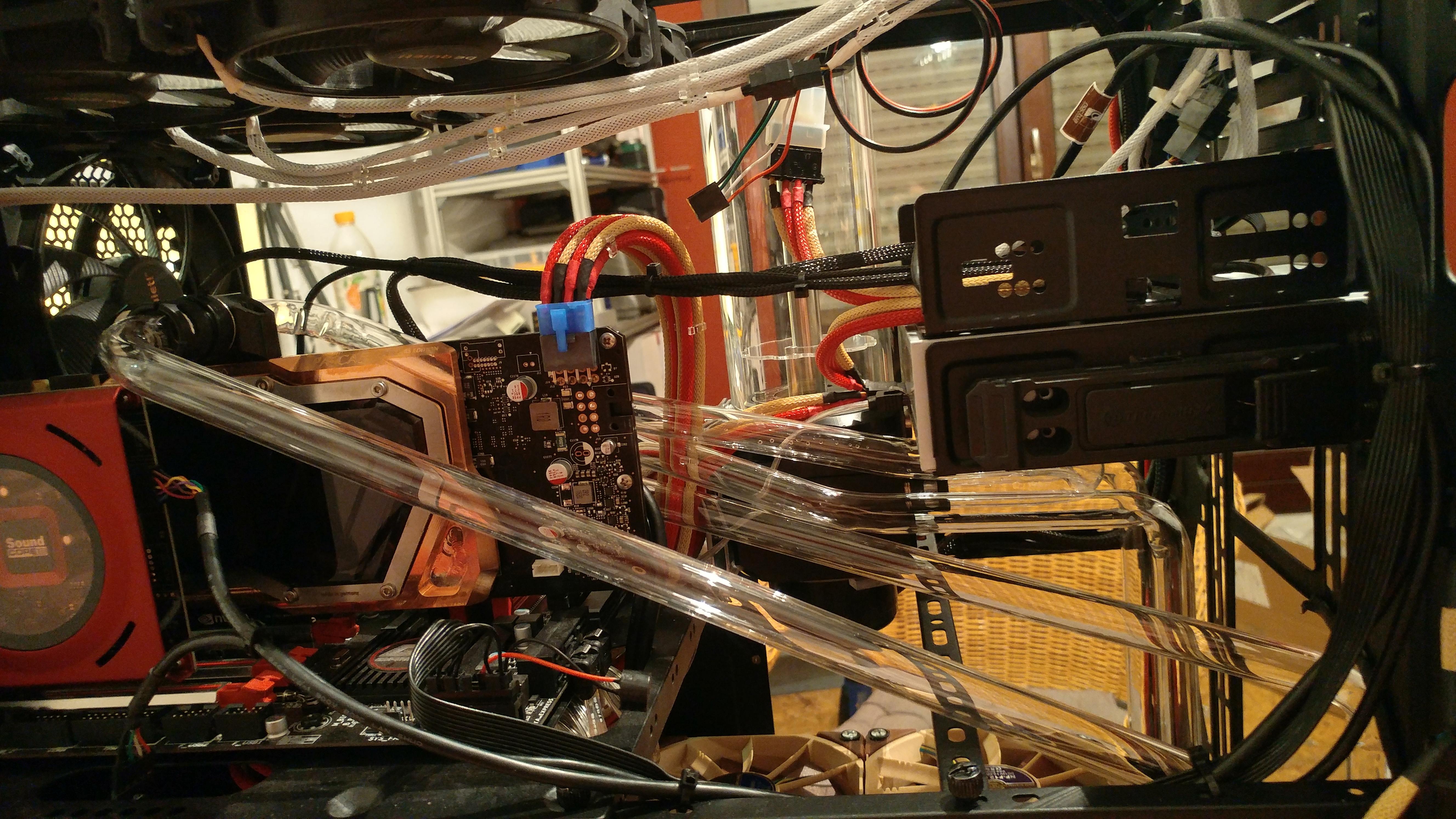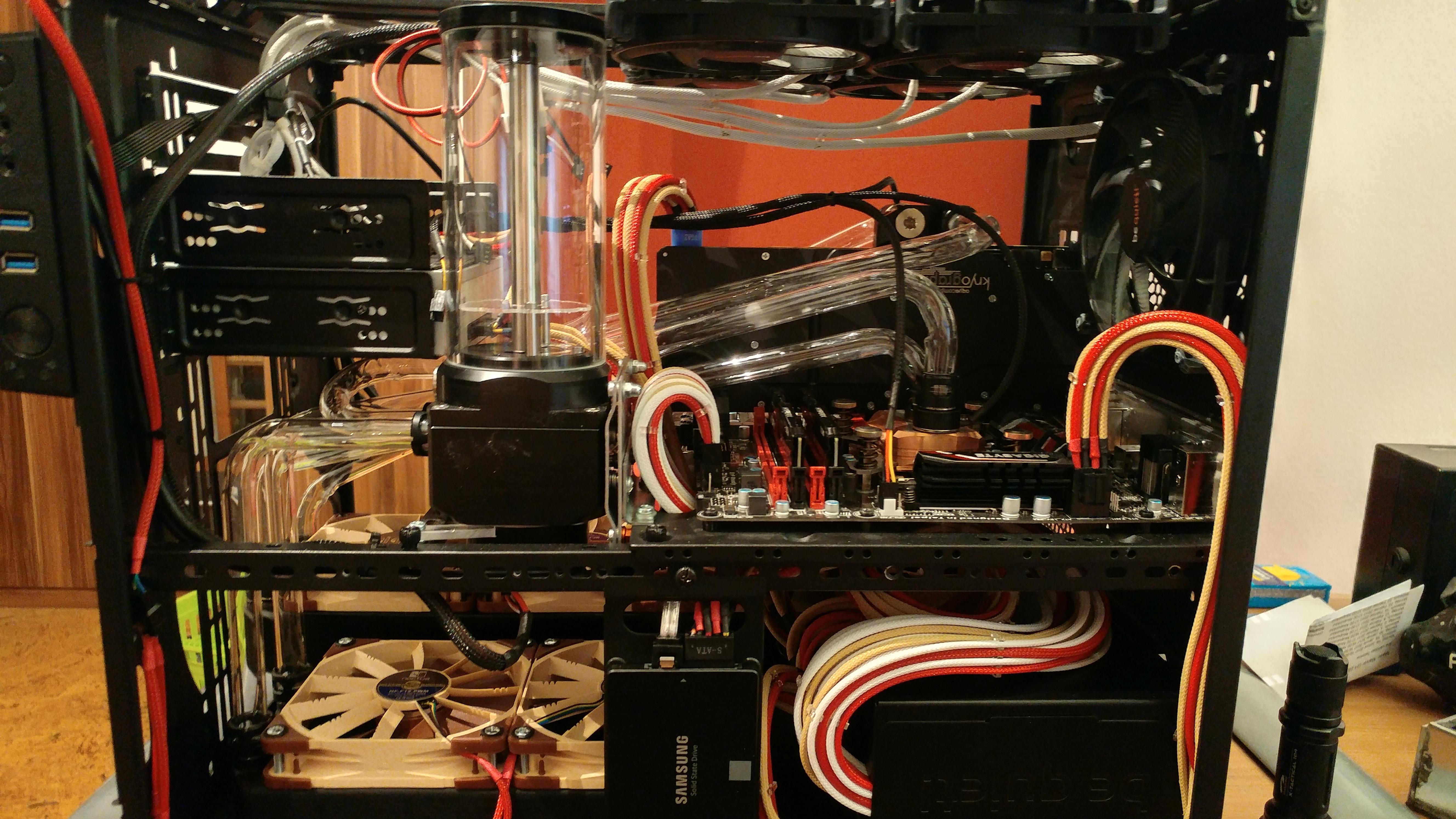 Momentan ist nur die CPU Wassergekühlt, da ich meine alte Grafikkarte noch nicht mitkühlen wollte (war ne Asus Strix R290 mit 3GB)
