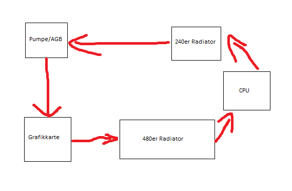 Es handelt sich hierbei um meine Wakü. Aktuell ist sie noch "verschlaucht", ich würde aber gern umbauen auf Hardtubing und in diesem Zuge meine Graka mitkühlen.