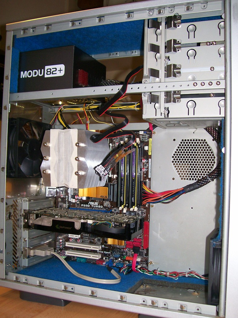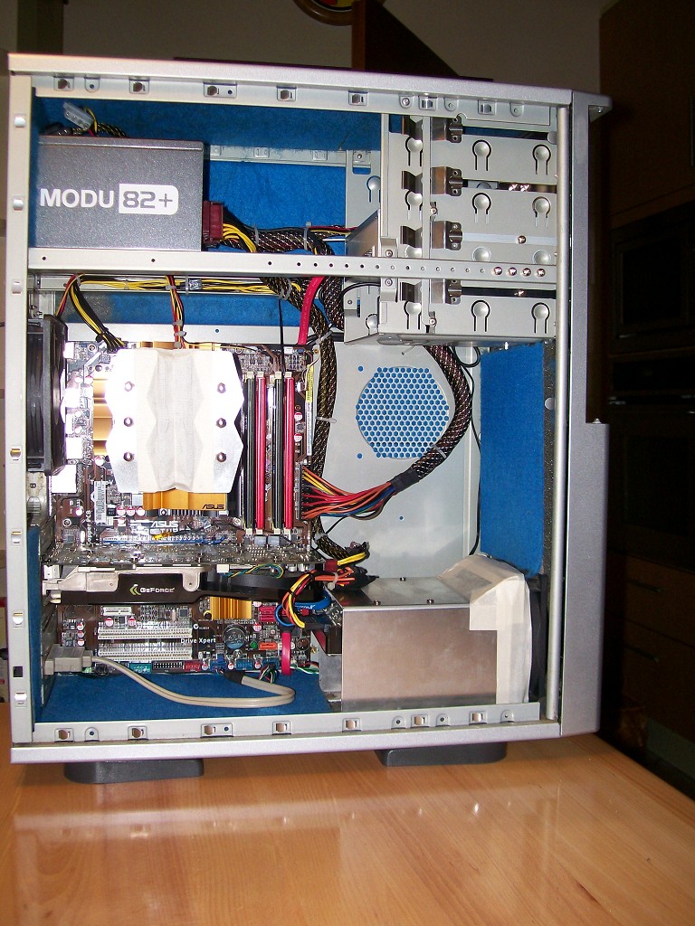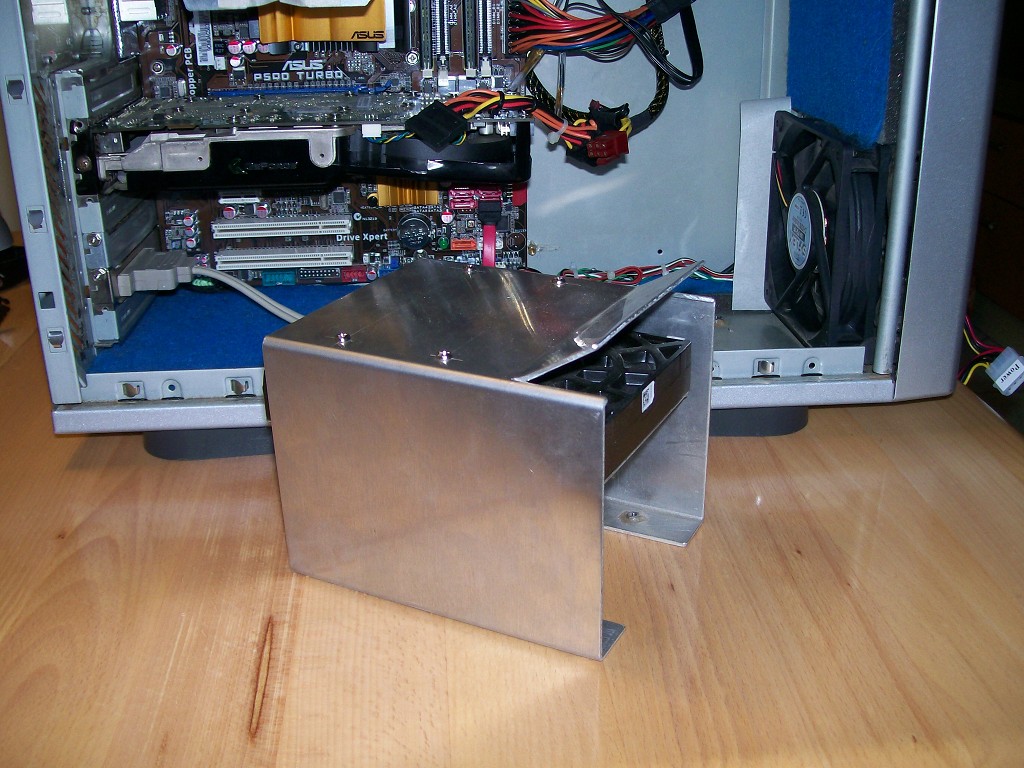 Das habe ich jetzt zum Anlass genommen Bilder von meinem umgebauten Midi Tower ( Chieftec BX, umbau ist schon 1 Jahr alt ) zu machen. Durch den Umbau lassen sich jetzt vorne wie hinten 120er Lüfter einsetzen. Ab Werk konnte ich immer nur 80er einsetzen. Ist jetzt wohl anders aber das Case habe ich schon seid 2003. Neben dem Lüfteraufnahmeumbau habe ich die Käfige für HDD u. FDD ausgebaut, also auch die aufnahmen für die Käfige. Gleichzeitig habe ich für HDDs einen Neuen Platz erschaffen.