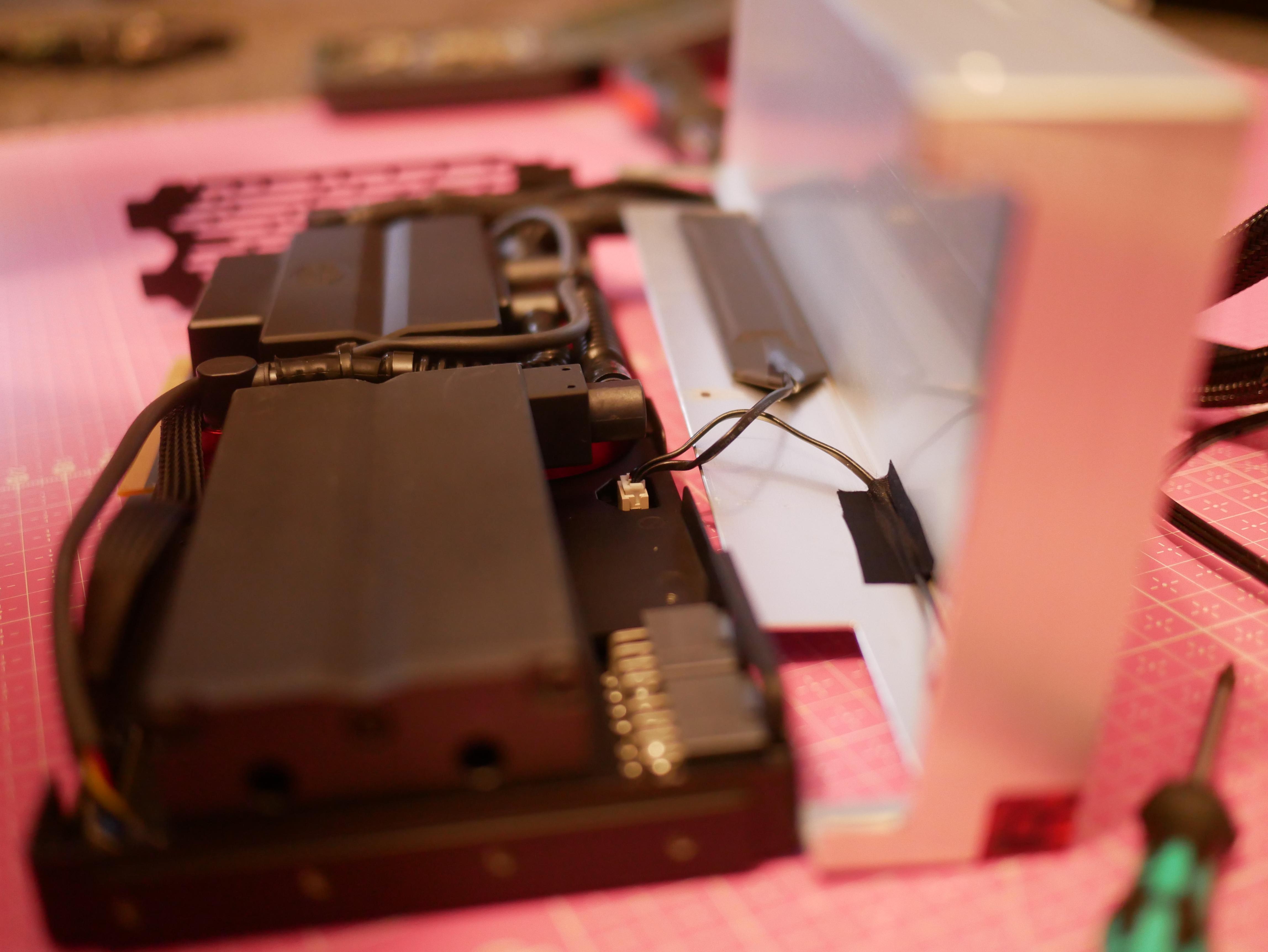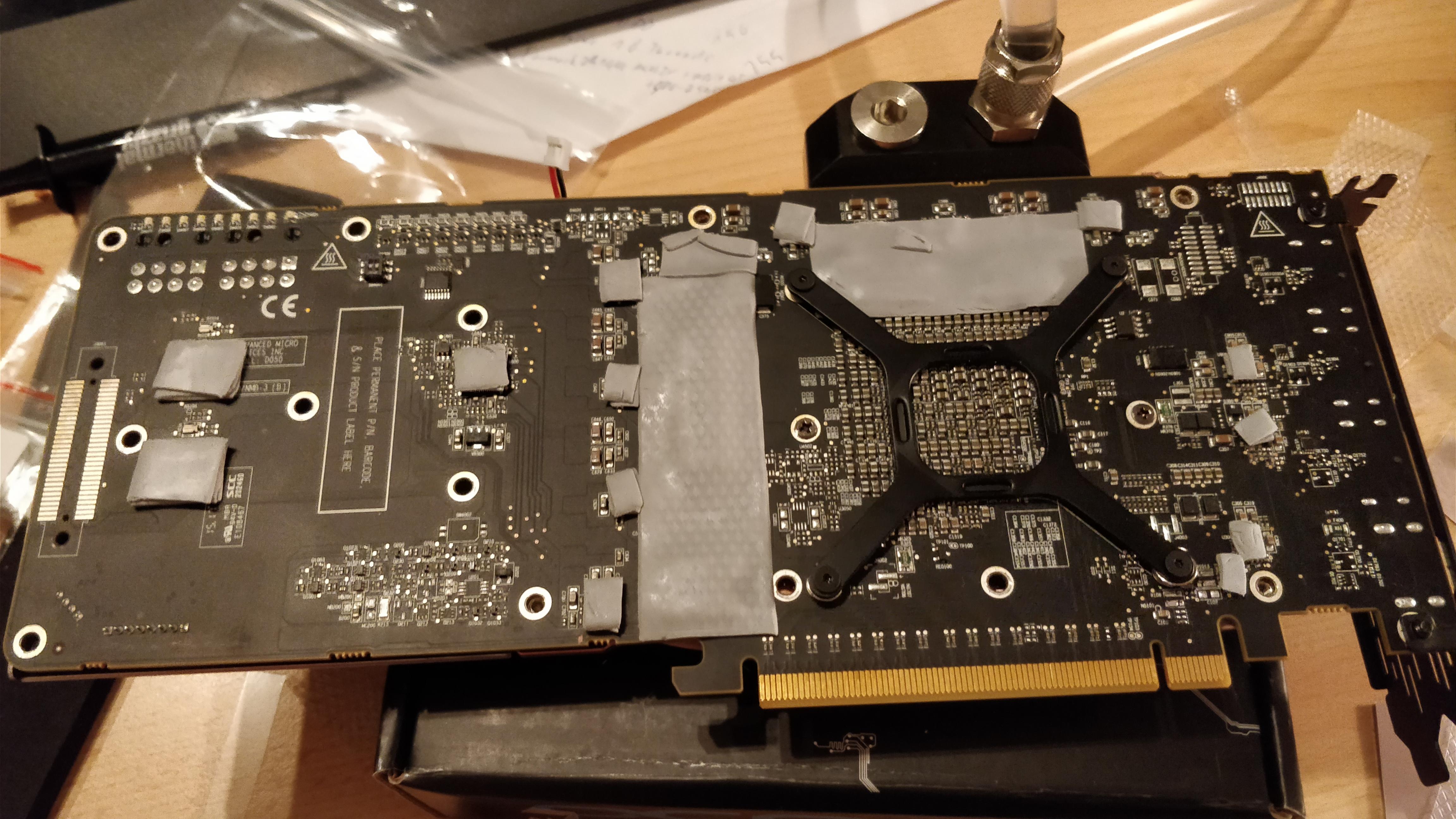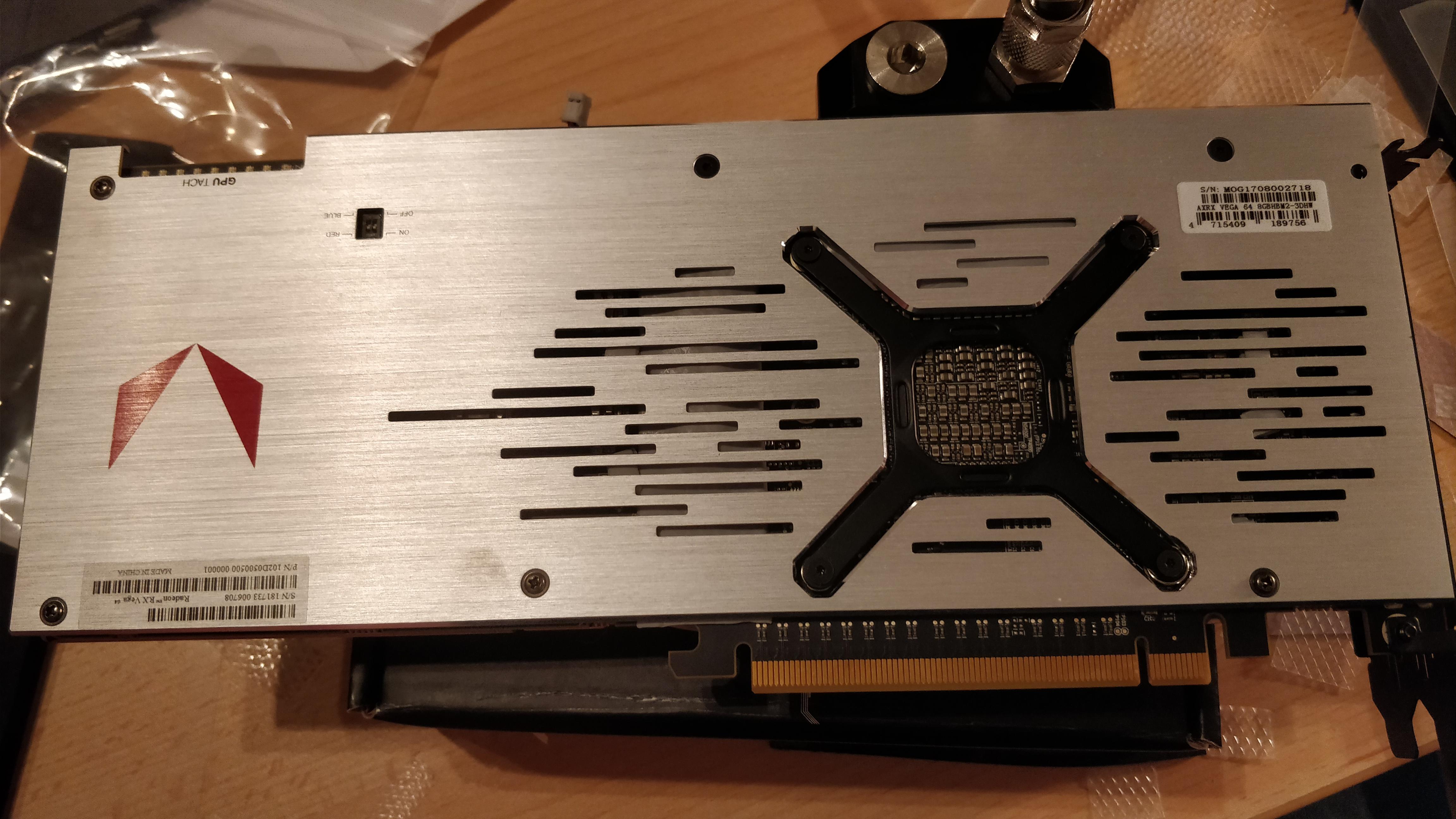 Ohne guten Airflow über die Rückseite, hätte ich die Backplate weggelassen und das PCB die Hitze abstrahlen lassen. Da der neue Radiator seitlich darüber positioniert ist, sollte dort jetzt einigermaßen Luftirkulation sein und daher hoffe ich auf eine brauchbare Kühlung.