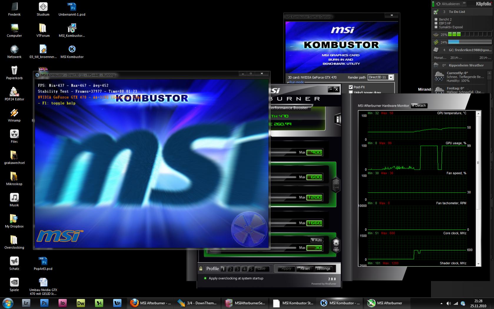 Als ich mir meinen neuen Rechner zusammengebaut habe war ich mit seiner Leistung vollkommen zufrieden. Im Zuge von ersten Overclocking-Versuchen an meiner MSI GTX 470 hab ich aber festgestellt, dass die Temperaturen von 92° C und die Lautstärke des Referenzlüfters unter Last nicht optimal sind.