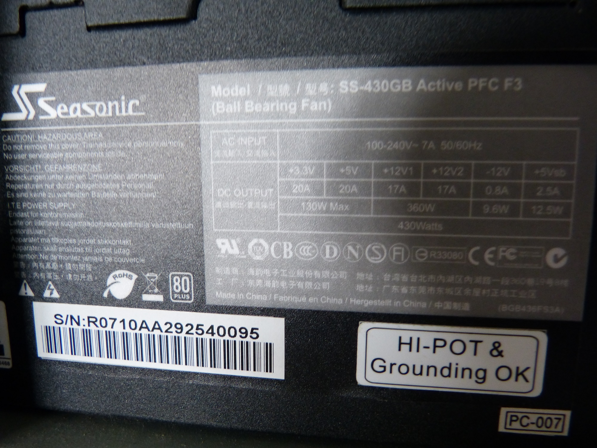 Mein Netzteil hier ist ein älteres Seasonic mit 420W und einem 12cm Lüfter.