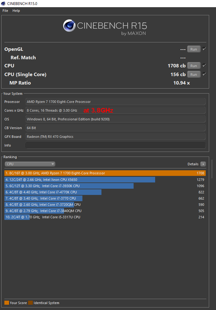 Die Arbeitsspeicher spielen beim Ryzen echt n große Rolle. Habe 100 Punkte weniger, beim gleichen Takt, da meine Arbeitsspeicher mit "nur" 3200mhz/cl16 laufen.