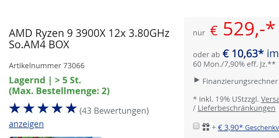NotizUmfrage: Wie steht es um den Ryzen 9 3900X im Handel?