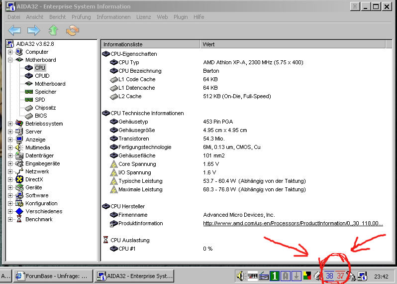 Mein 2500 Barton läuft mit nem 200 FSB, nem Multi von 11,5 und die Core ist default- also 1,65V mit 2300MHZ!! (49 C°Vollast)