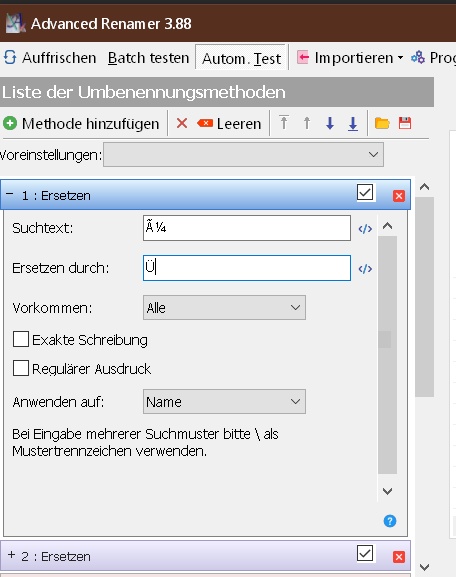 Ich möchte alle Datei- und Verzeichnisnamen diese Steuerzeichen entfernen und durch entsprechende Umlaute ersetzen.