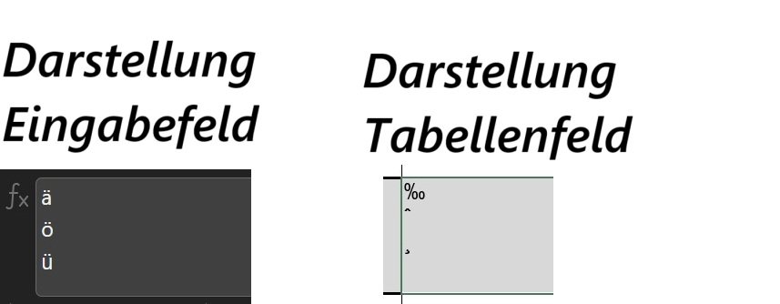 als ich gestern Abend eine Excelliste öffnete staunte ich nicht schlecht, als plötzlich in den Feldern alle Umlaute als Sonderzeichen dargestellt wurden. Klickt man auf das Feld wird im Eingabefeld allerdings korrekt der Umlaut angezeigt. Siehe Anhang. Ich kann leider nicht sagen, seit wann das so ist. Die Liste habe ich zuletzt am 11.07. geöffnet, da war noch alles normal und wurde ohne zu speichern wieder geschlossen. In dieser Zeit kann ich mich auch an kein Update erinnern. Ist das ein Bug, oder kann ich irgendwo in den Einstellungen etwas drehen? Ich habe zwar schon nach anderen Berichten hierzu geforscht und die Einstellungen nochmal durchgesehen, aber keine Abhilfe leisten können.