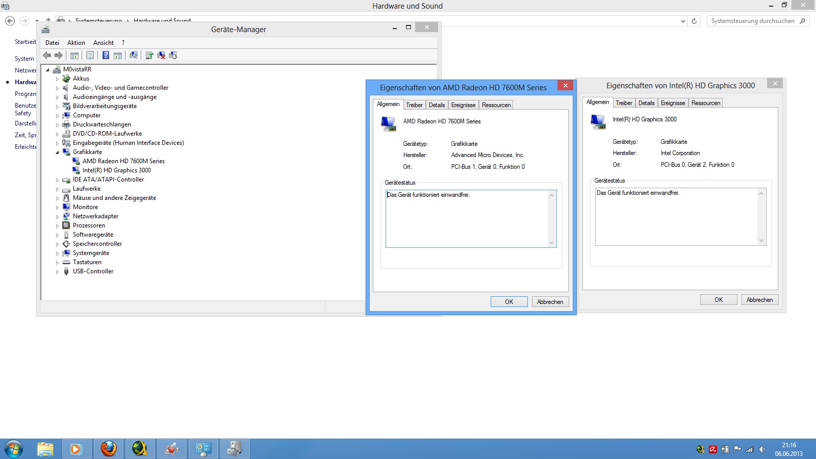 Eine zweite - die Radeon HD 7670M ist ebenfalls verbaut und wird im Geräte Manager auch angezeigt als "funktioniert einwandfrei"