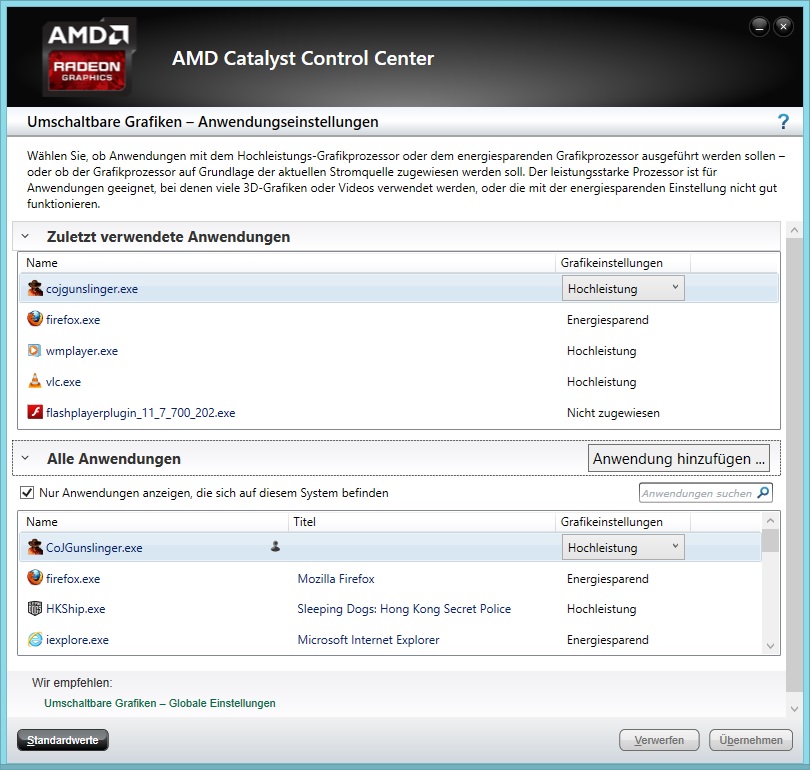 Mir kam es so vor, als würde nur die onBoard genutzt werden, da ich immer den normalen Treiber von der ATI/AMD Page genommen hatte und dieser auch funktionierte, dachte ich mri aber nichts bei.