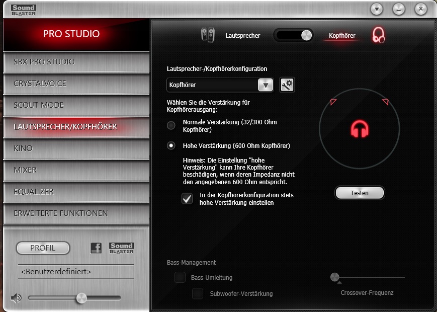 ich möchte Softwaremäßig umschalten zwischen Kopfhörer und 2.1 Sound.