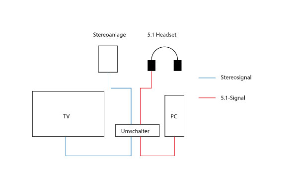 Den PC-Sound möchte ich wahlweise über ein Headset oder auch über eben diese Anlage laufen lassen und zwar ohne jedes Mal Kabel umzustecken.