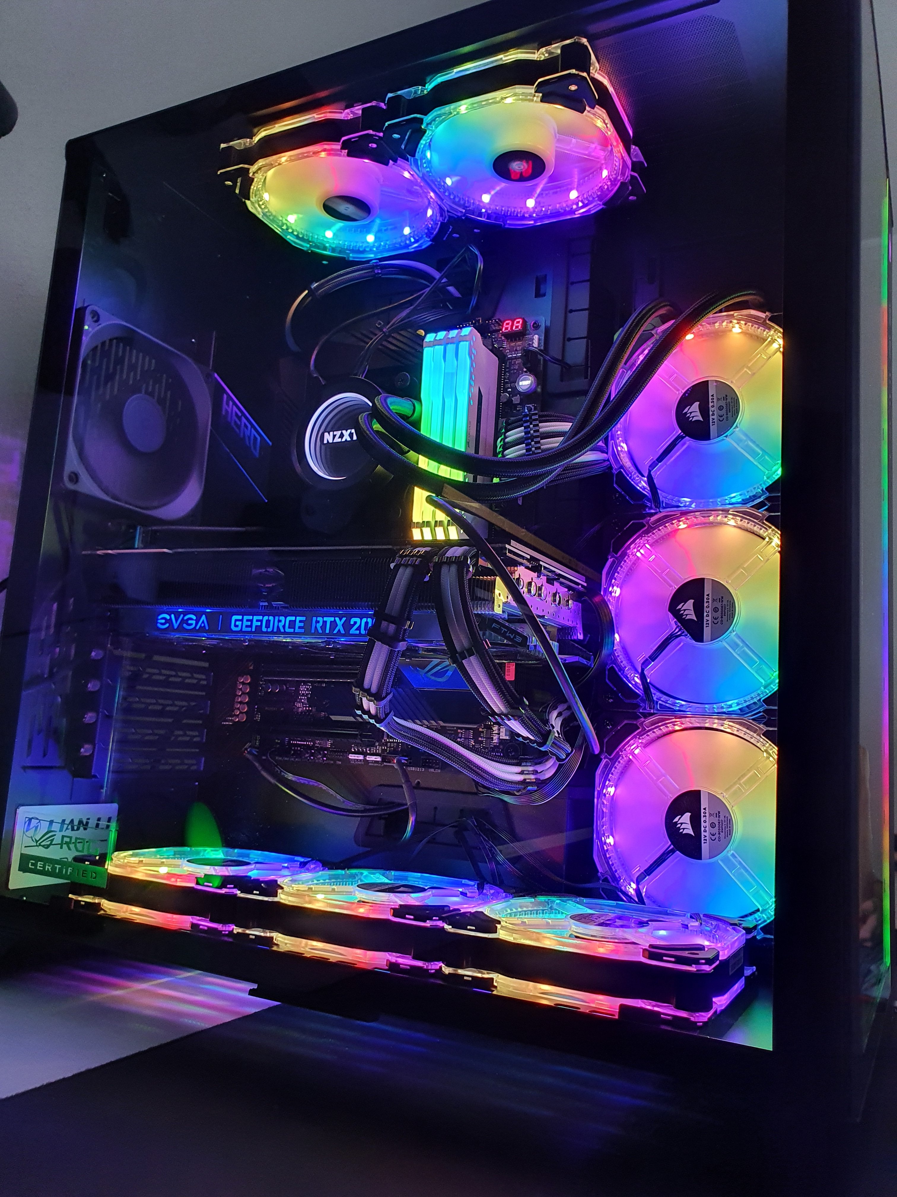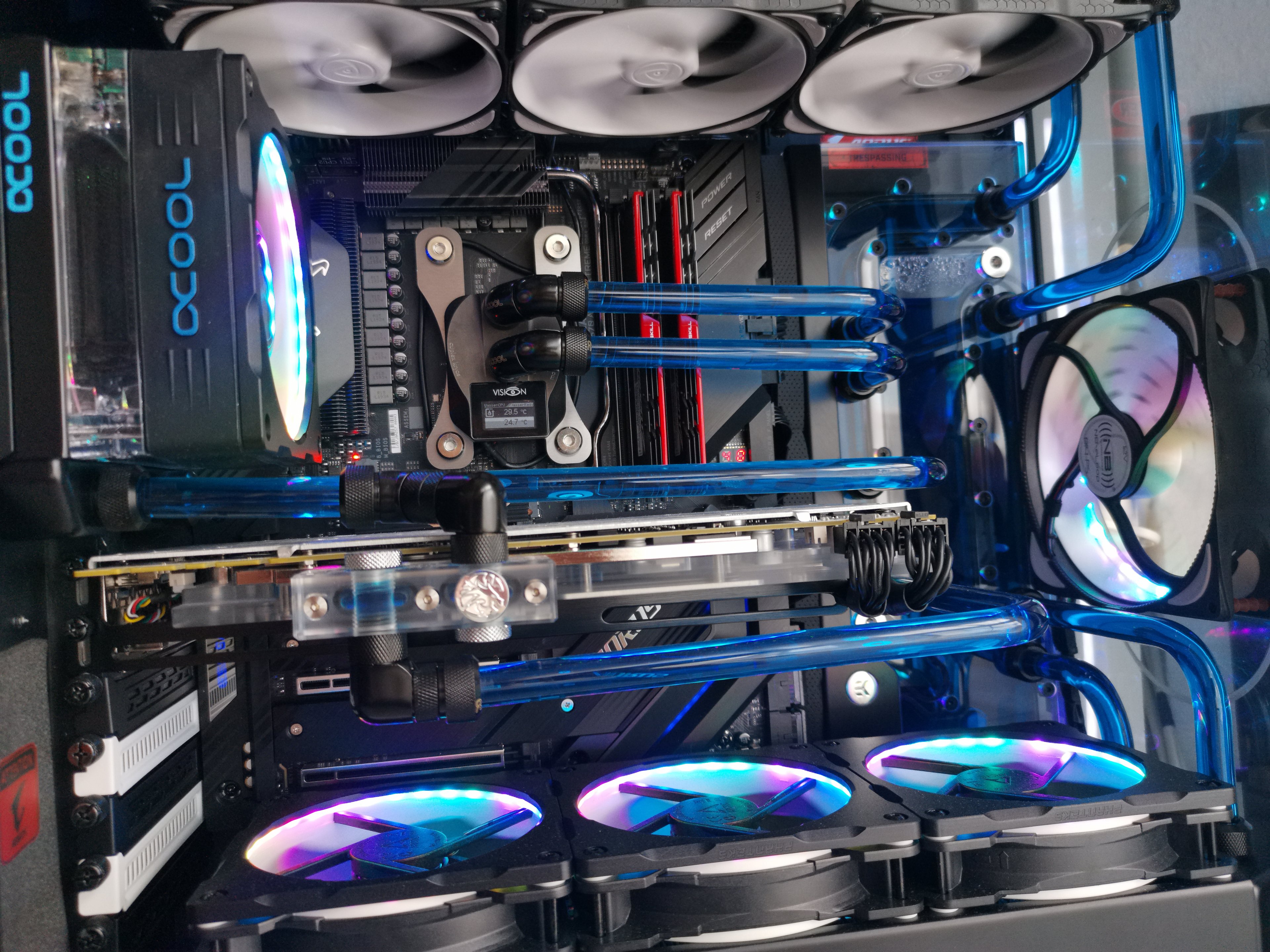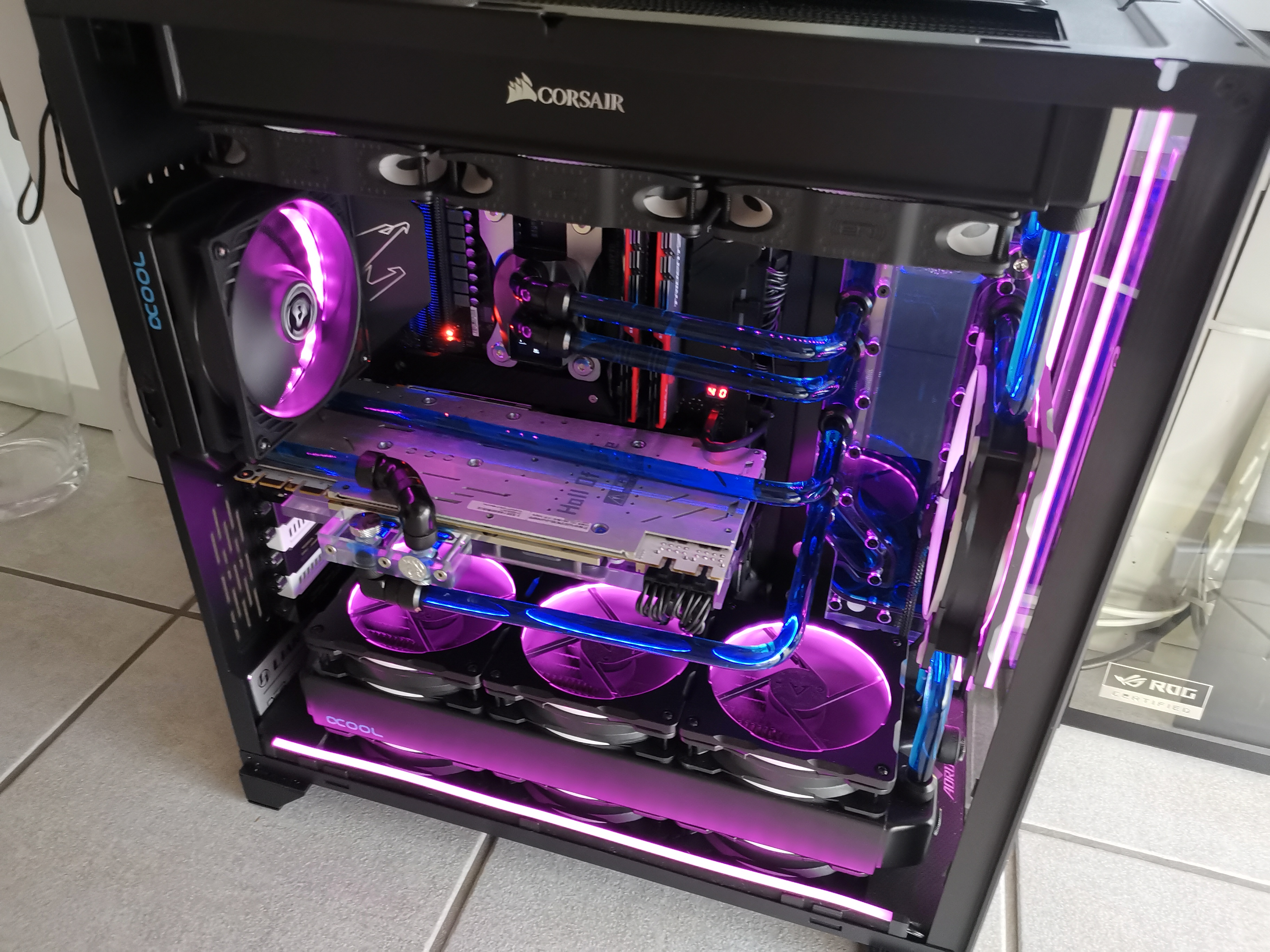 Schlagt mich bitte nicht fuer das Cable Management, ich weiss es ist grottenschlecht, viel Muehe habe ich mir jetzt nicht gemacht, da ja demnaechst die EKWB Teile bestellt werden. War ja nur dafuer gedacht, dass ich die Teile erstmal roh einsetze und mir dann ein Bild mache.