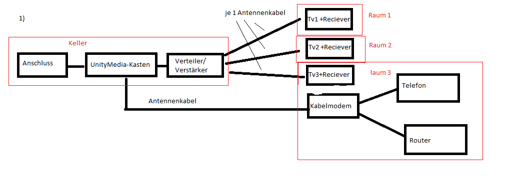 1) Nun ist die TV-Veteilung im Haus meiner Eltern allerdings ein wenig.. naja, improvisiert würde ich es nennen.