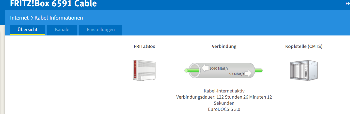 Im Router steht weiterhin, dass was um die 34 ankommt. Meine aktuelle Fritzbox ist die 6360 Cable (kdg). Neu gestartet hab ich sie, sogar auf Werkseinstellungen mal zurück gesetzt.