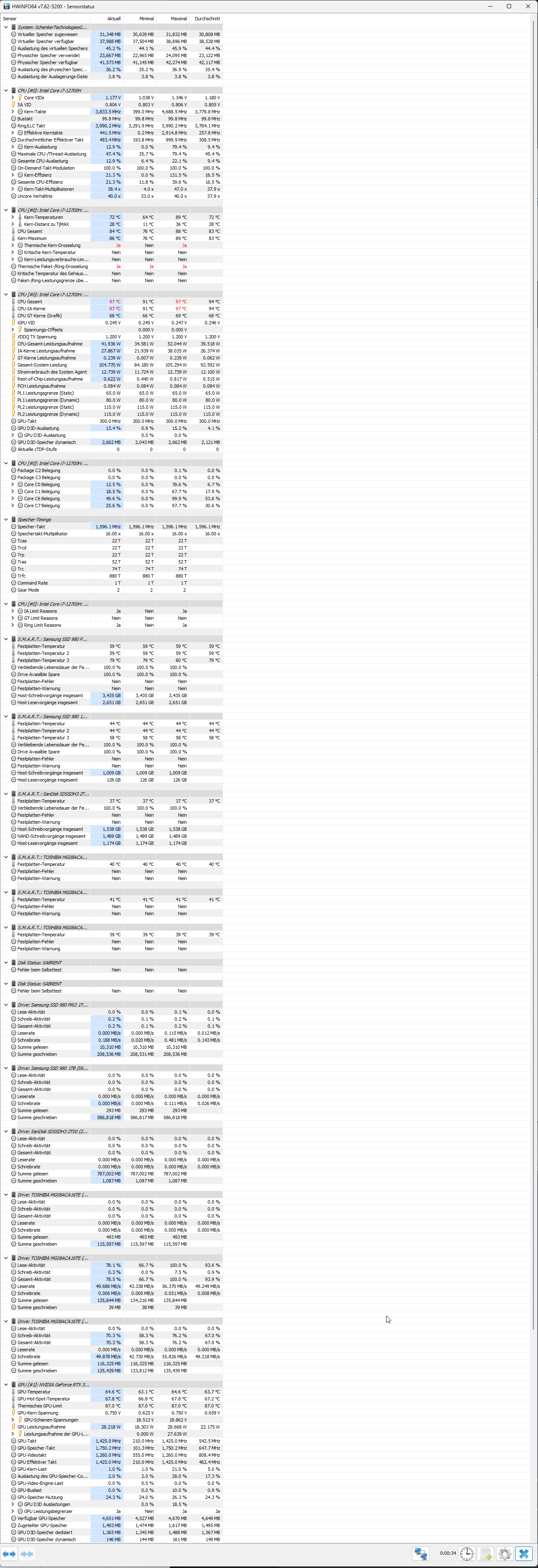 ich hatte die ganze Zeit ein Apex17m21 mit einem AMD Ryzen 9 5900HX und RTX 3070 und 32 GB RAM. Diesen musste ich leider der Firma zurückgeben und nun nutze ich mein eigenes Focus15m22 mit Intel Core i7-12700H, RTX 3060 und 64 GB RAM.
